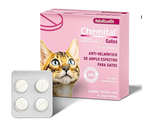 Vermífugo Chemital para Gatos 4 Comprimidos